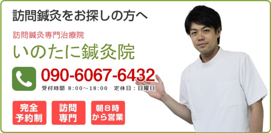 いのたに鍼灸整体院は鍼灸やリハビリの国家資格を持ったスタッフが、脳梗塞、脳出血、パーキンソン病などの病気による関節拘縮や痛み、神経痛、腰痛、頚腕症候群、リウマチ、頚椎捻挫後遺症により歩行が困難になった方のお宅に訪問して、健康保険を使ってリハビリや鍼灸マッサージを行う治療院です。脳梗塞、脳出血を始めとした様々な理由により歩行が困難になることで、治療院に行くことができないという問題を解決し、たくさんの患者様にご好評をいただいております。